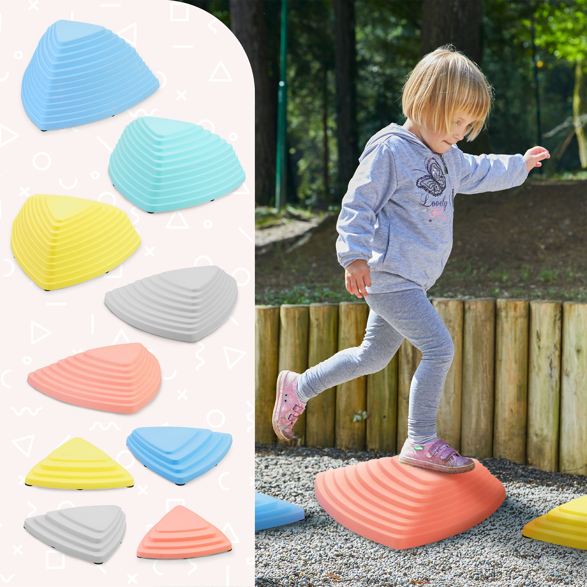 Komplet ravnotežnih kamnov, ki so na voljo v pastelnih barvah, ne le krasi otroško sobo, temveč predvsem zagotavlja ustvarjalno zabavo. Kamne je mogoče uporabiti na različne načine, odvisno od trenutnih potreb in zamisli otrok. Balančni kamni podpirajo tudi motorični razvoj malčkov in jim dajejo priložnost, da vadijo svoj občutek za ravnotežje.
