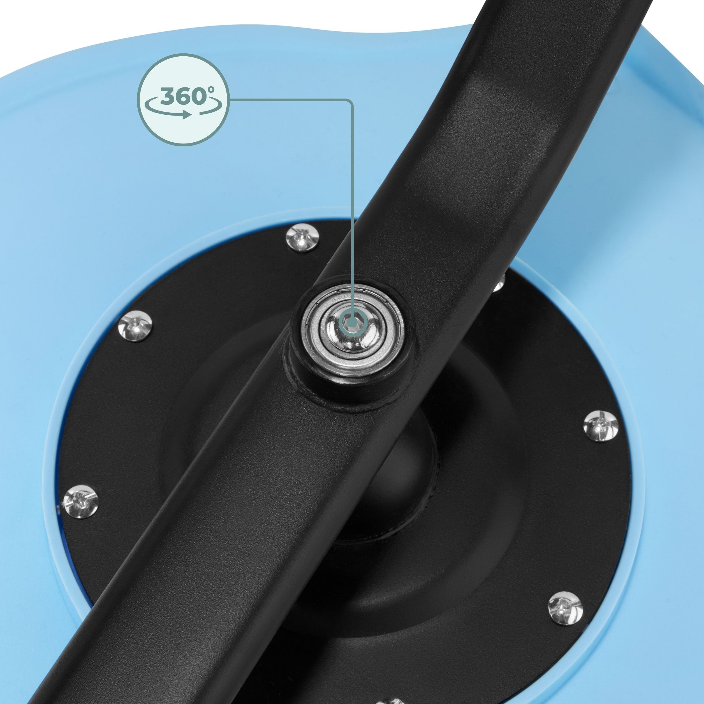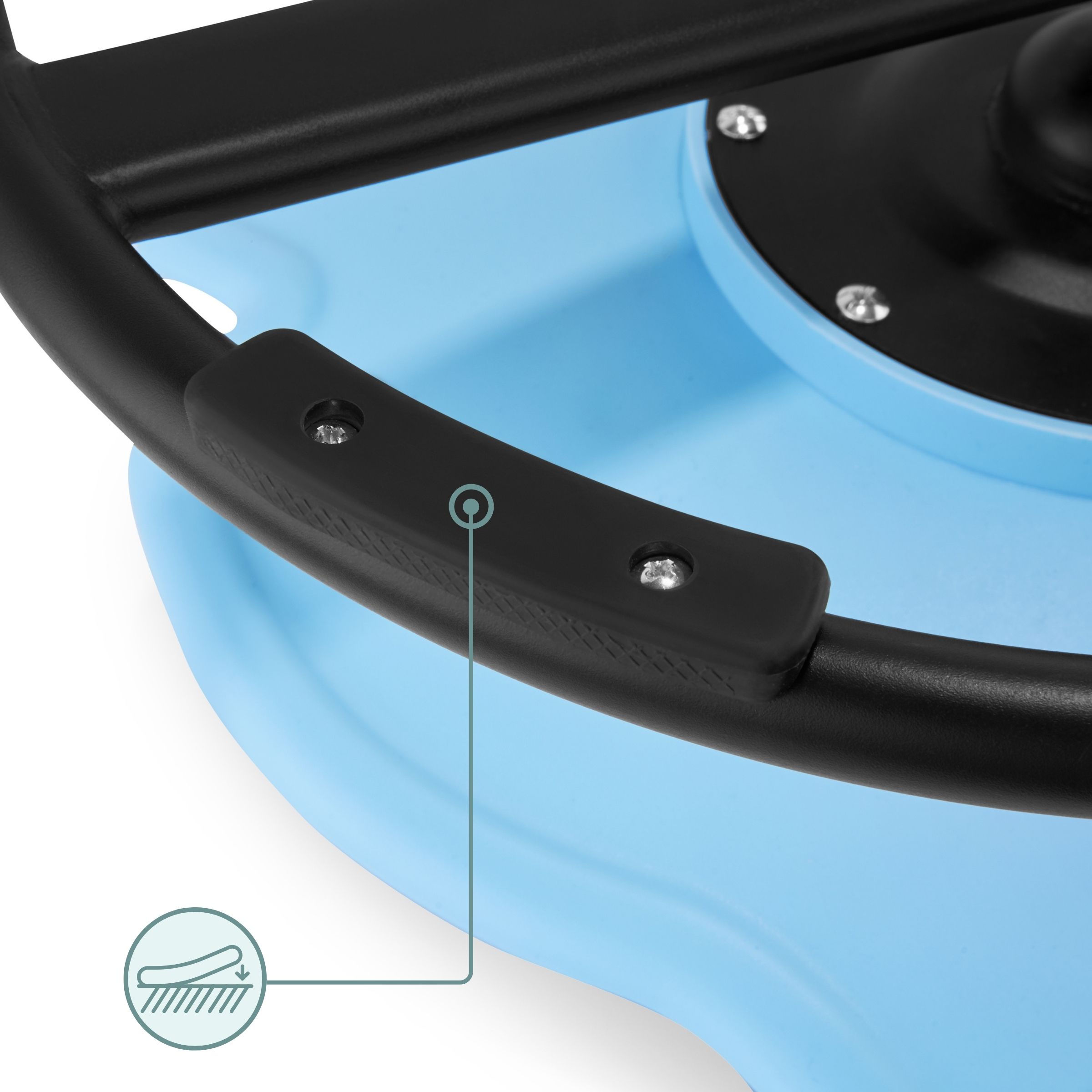Vse, kar morate storiti, da se začnete zabavati, je, da se usedete nazaj in prenesete težo telesa na želeno stran. Sedež mini vrtiljaka je namreč nagnjen pod pravim kotom. Otrok sam določi število in hitrost zavojev ter smer vrtenja. Za malčke, ki še ne obvladajo ravnotežja, lahko vrtiljak spravite v gibanje tako, da se z nogami odrinete od tal.