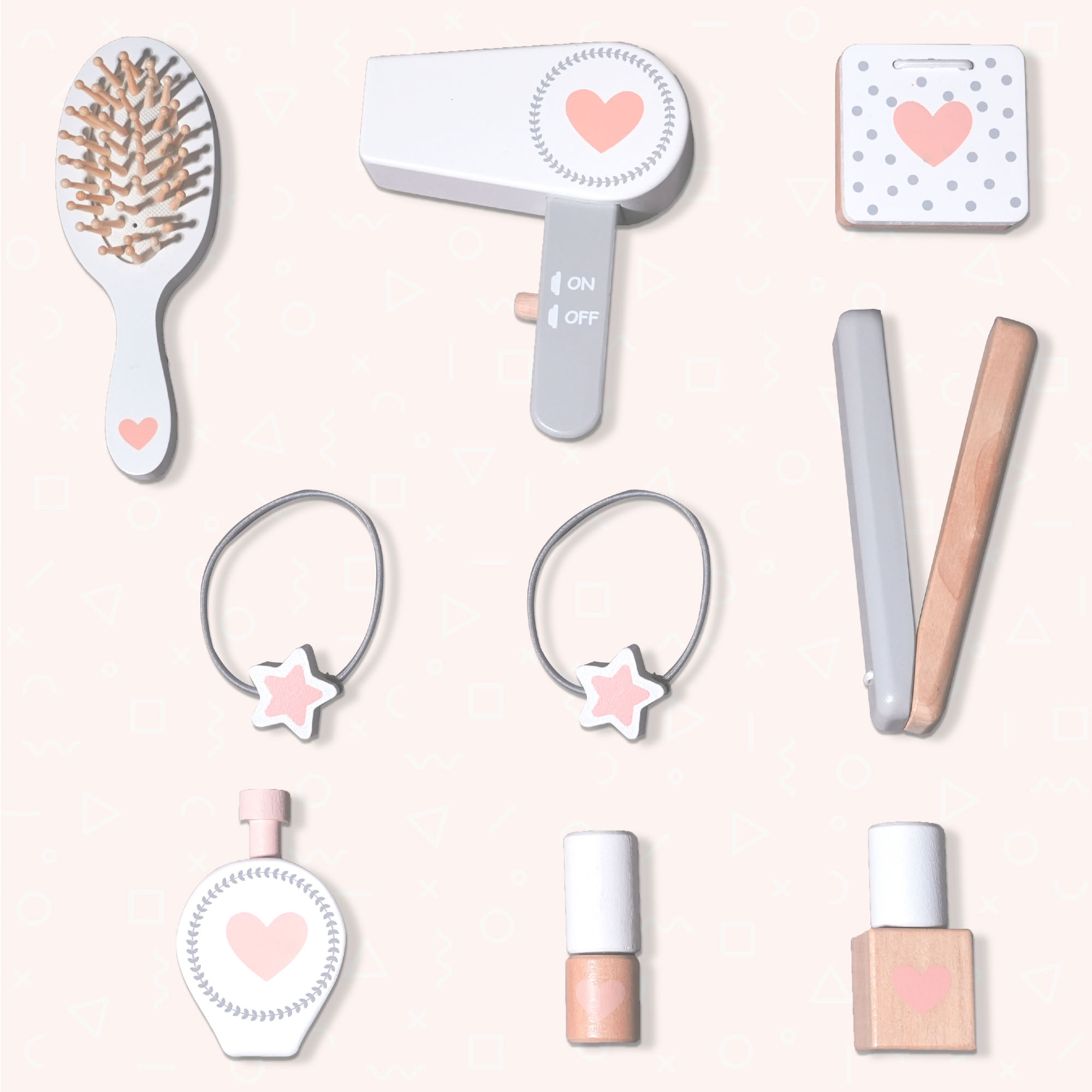 Lesena toaletna mizicaMAMABRUM je edinstven kos pohištva, ki bo navdušil vsakega otroka, ki sanja o svojem kotičku za ličenje in oblikovanje. Ustvarjena je posebej za otroke, ki se radi igrajo v domačem kozmetičnem salonu. Zaradi trdne konstrukcije, čudovitega dizajna in večnamenskosti ne bo le estetski dodatek v sobi, temveč tudi prostor za vsakodnevne rituale, ustvarjalno igro in razvijanje domišljije.