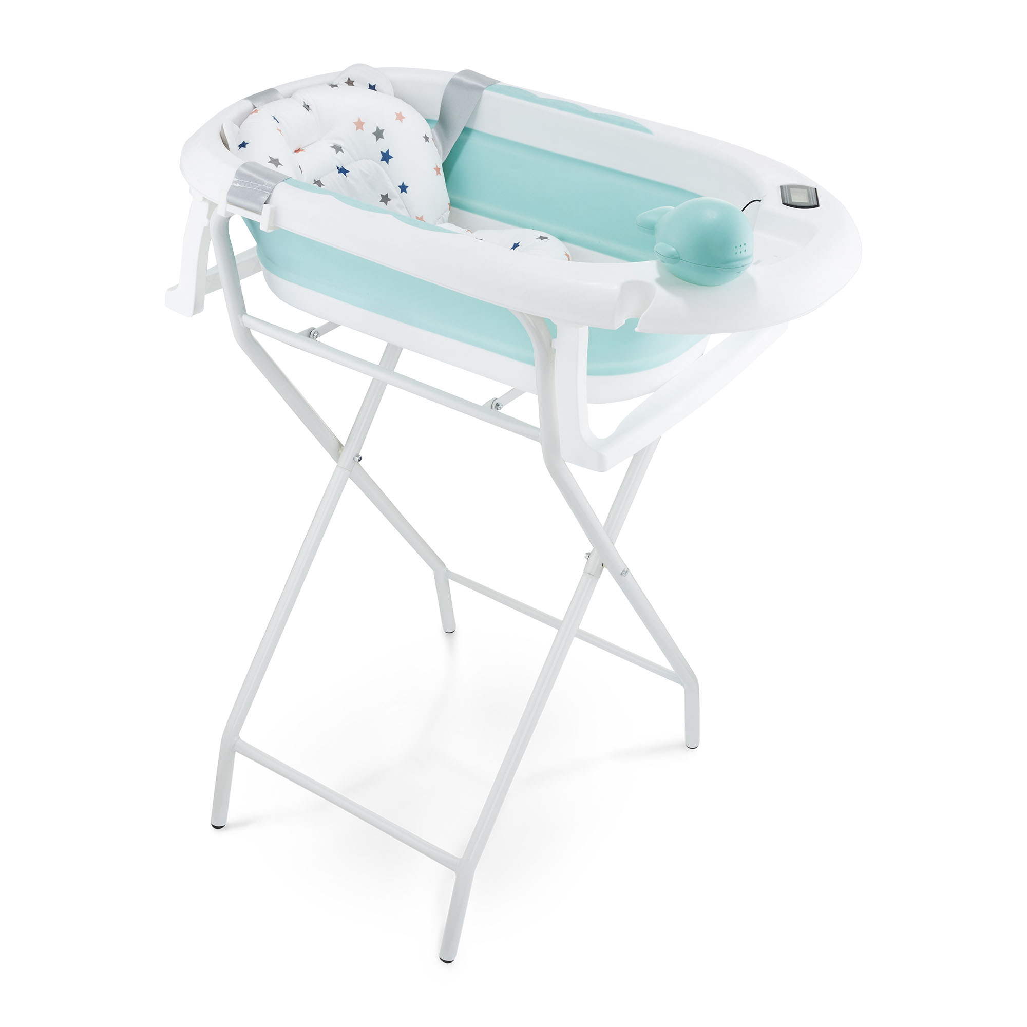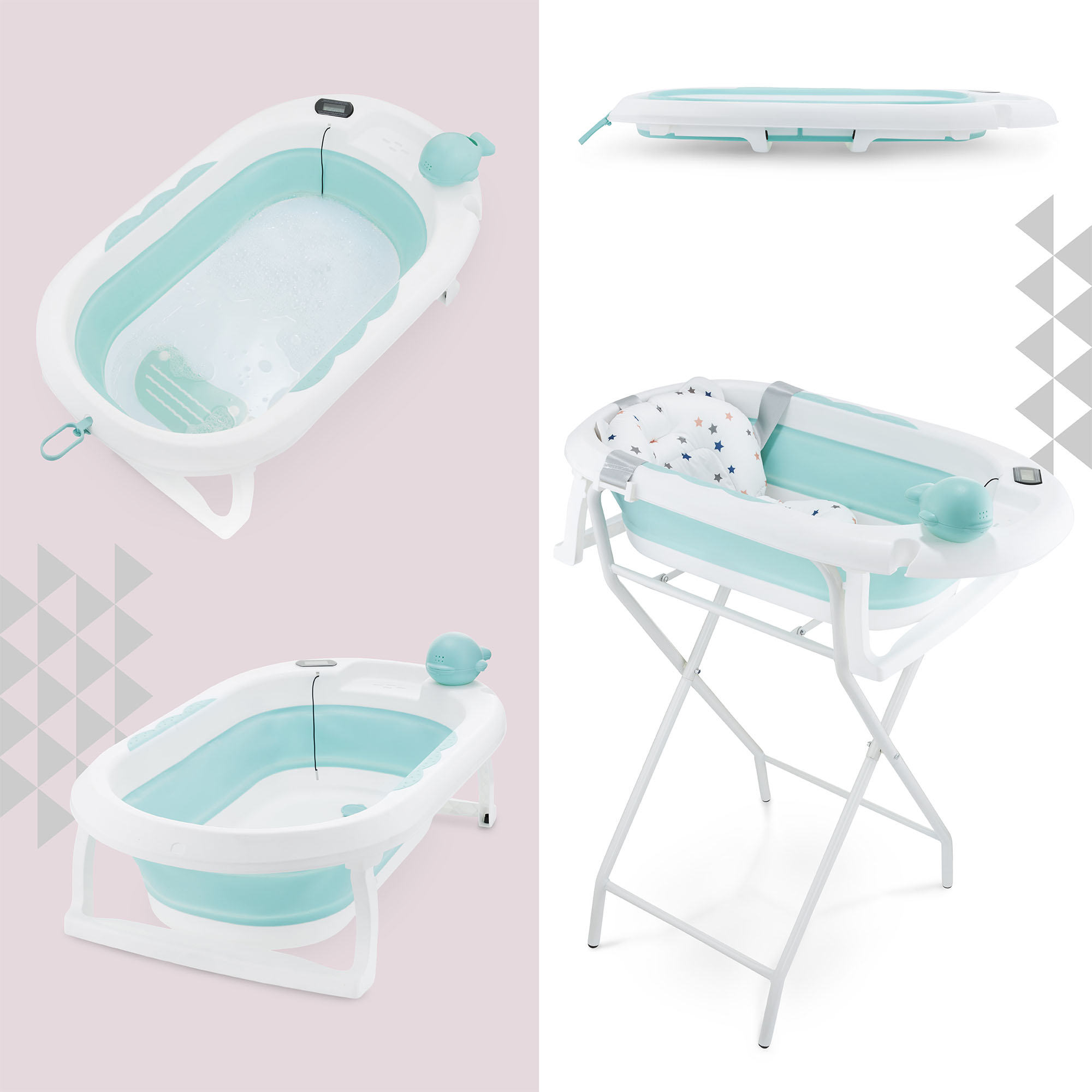Zložljiva kopalna kad za dojenčke s termometrom, vložkom in stojalom - barva mete
