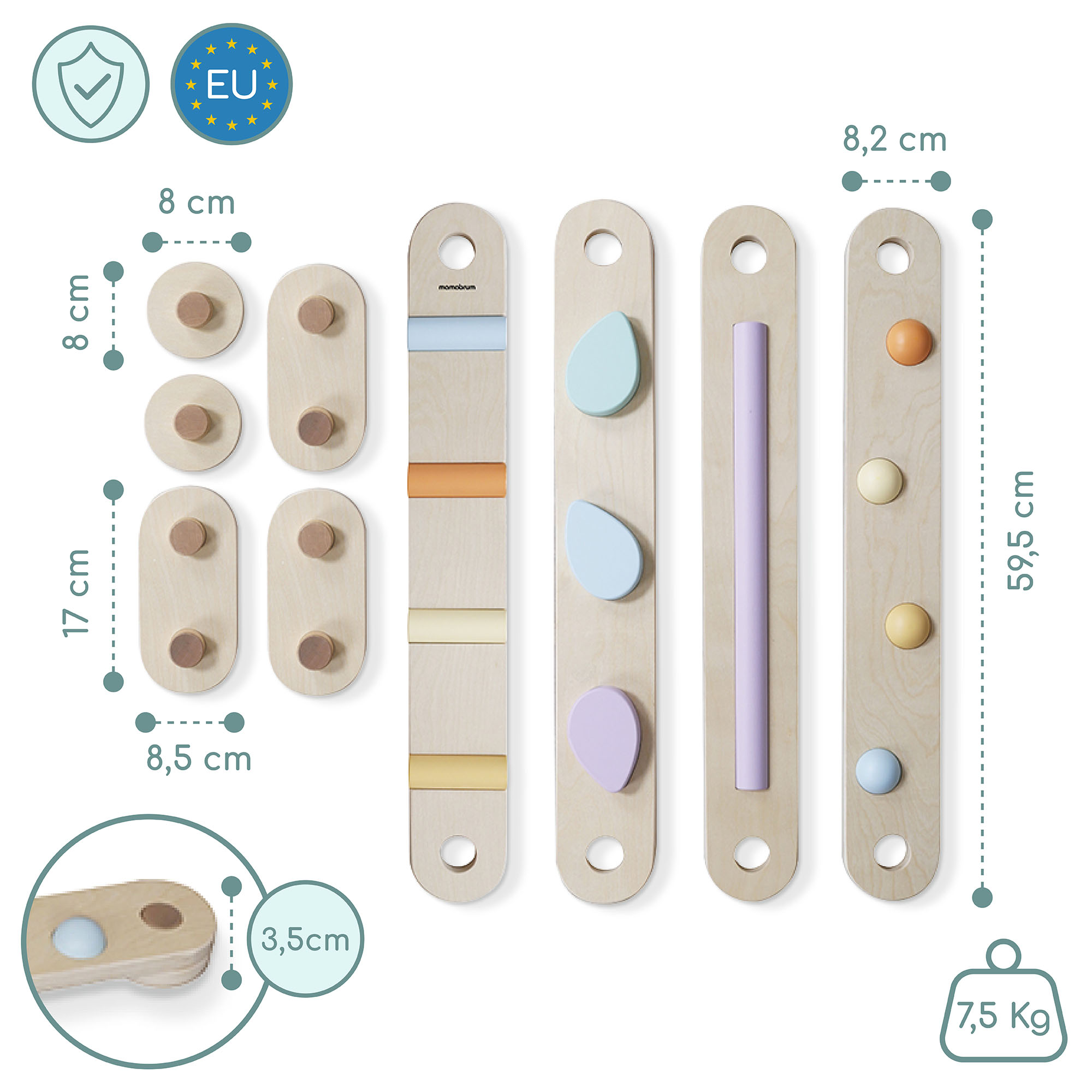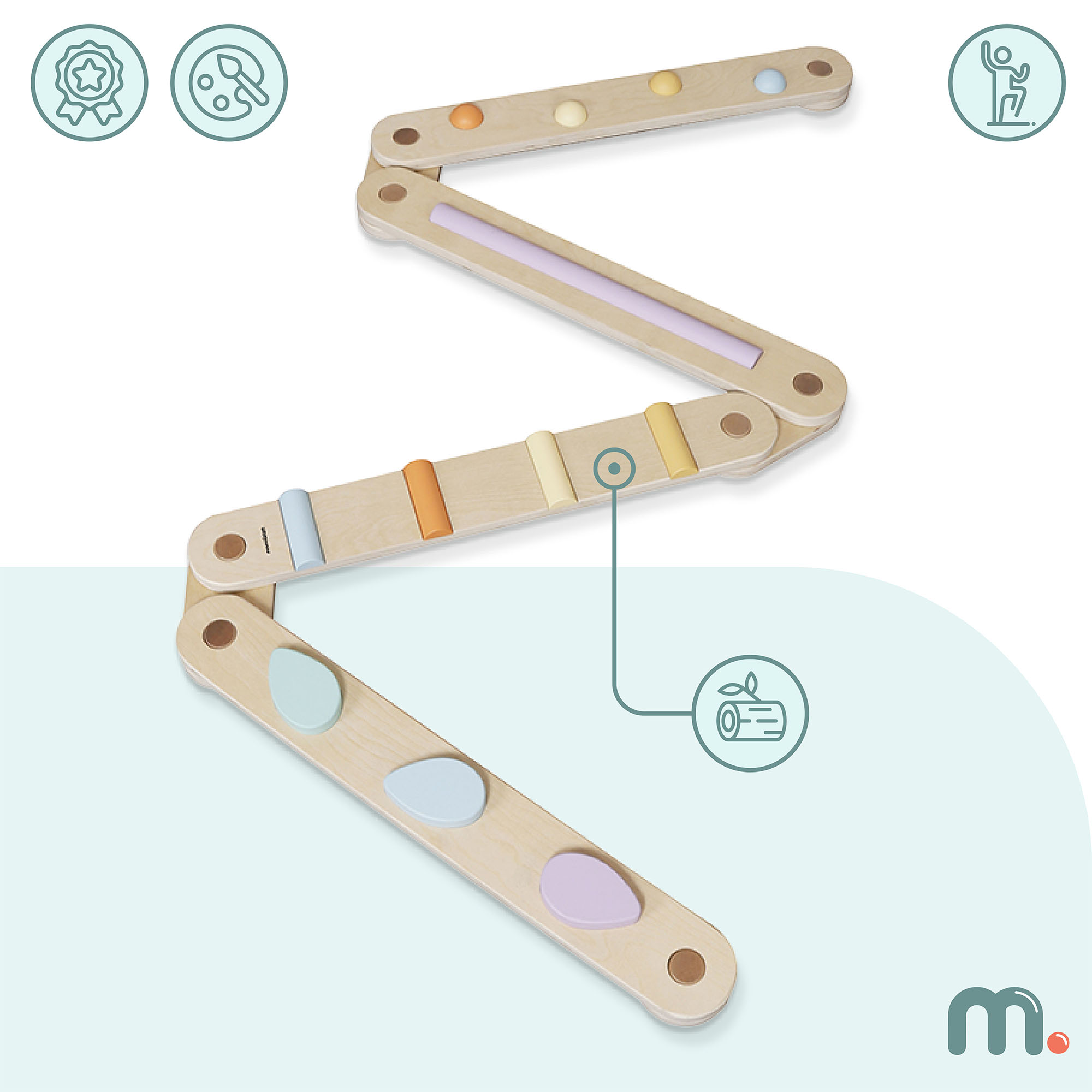 Lesena senzorična steza je edinstvena igrača, ki bo vsako notranjost spremenila v prostor, poln gibanja, zabave in učenja. Zaradi možnosti postavitve v različne oblike - kvadrat, cikcak ali odprta pot - otrok pridobi neskončno načinov igre, hkrati pa razvija ravnotežje, koordinacijo in domišljijo. Pisani senzorični elementi v zanimivih oblikah še dodatno spodbujajo čute in spodbujajo aktivno igro.