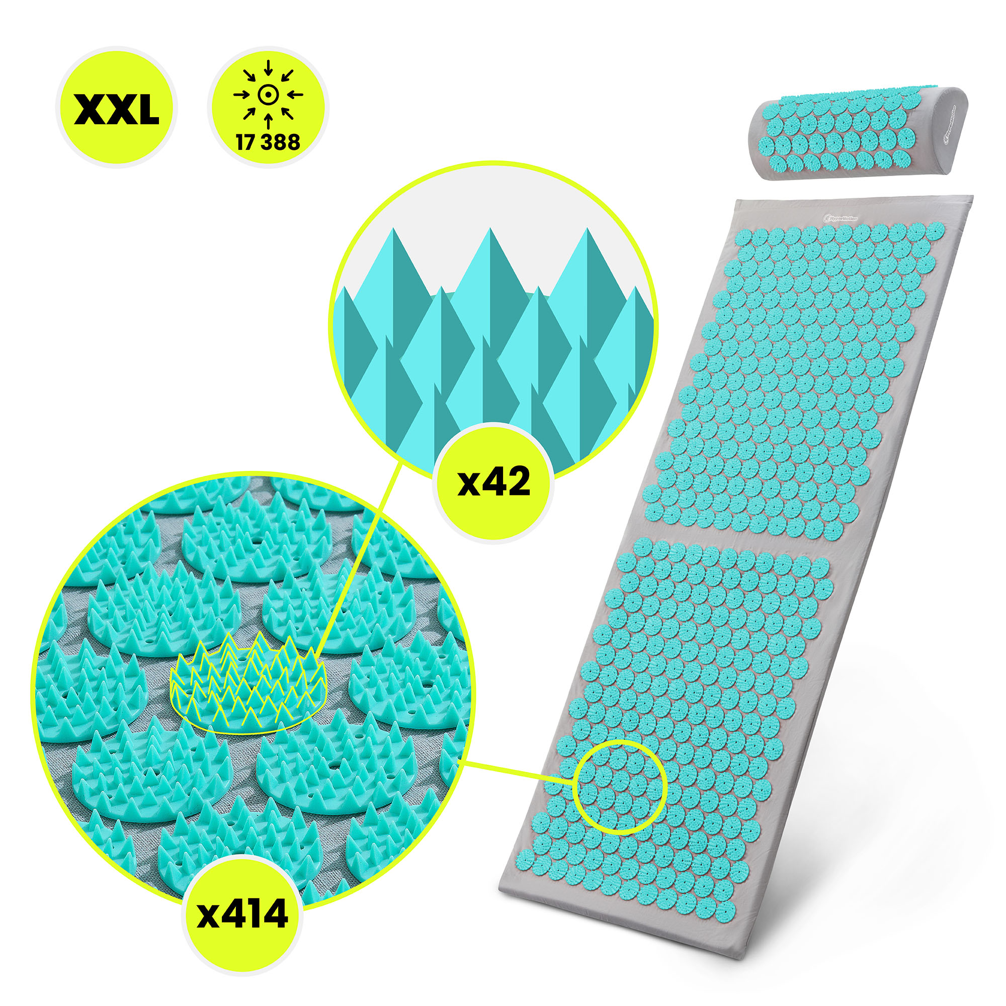 Velika akupresurna podloga z blazino in prevleko - 130 cm HyperMotion sivo-mint