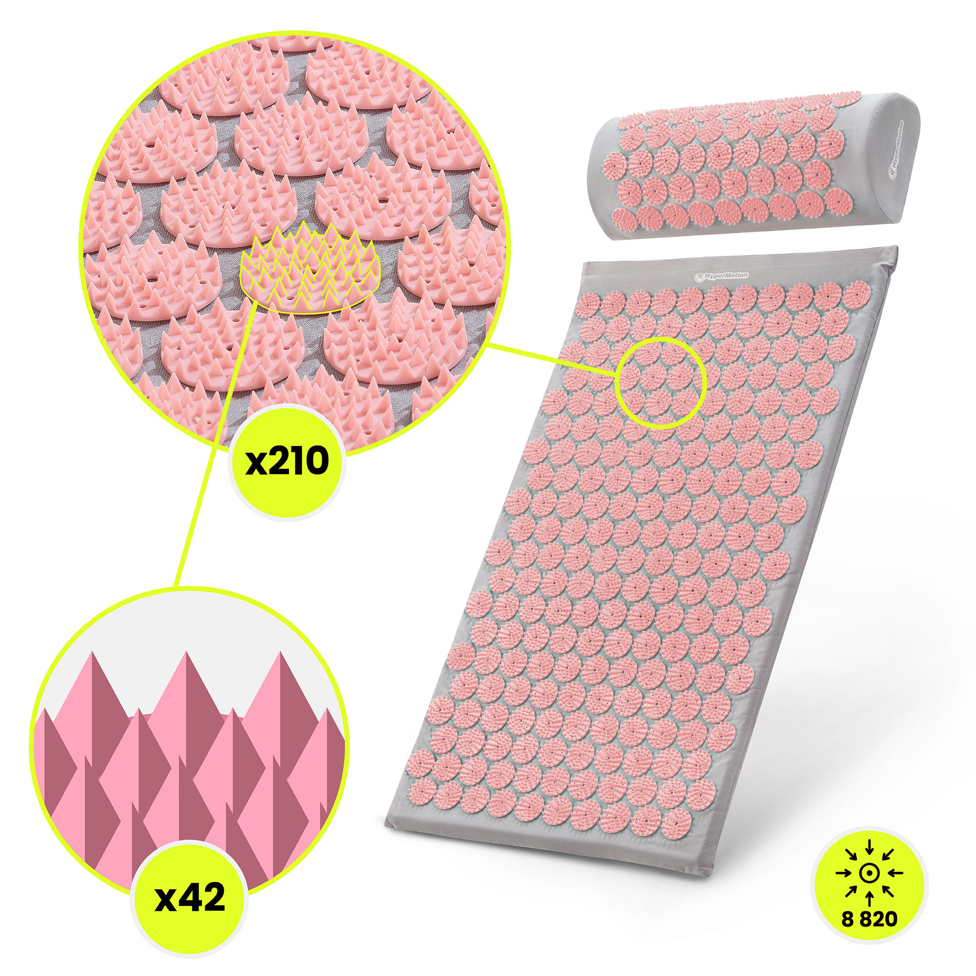Akupresurna podloga z blazino in prevleko - 72 cm HyperMotion siva in roza